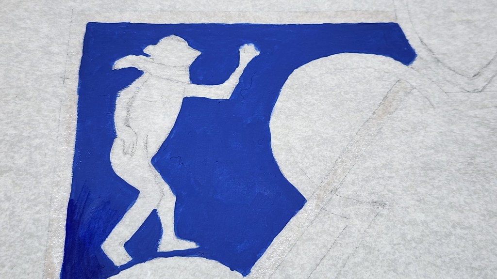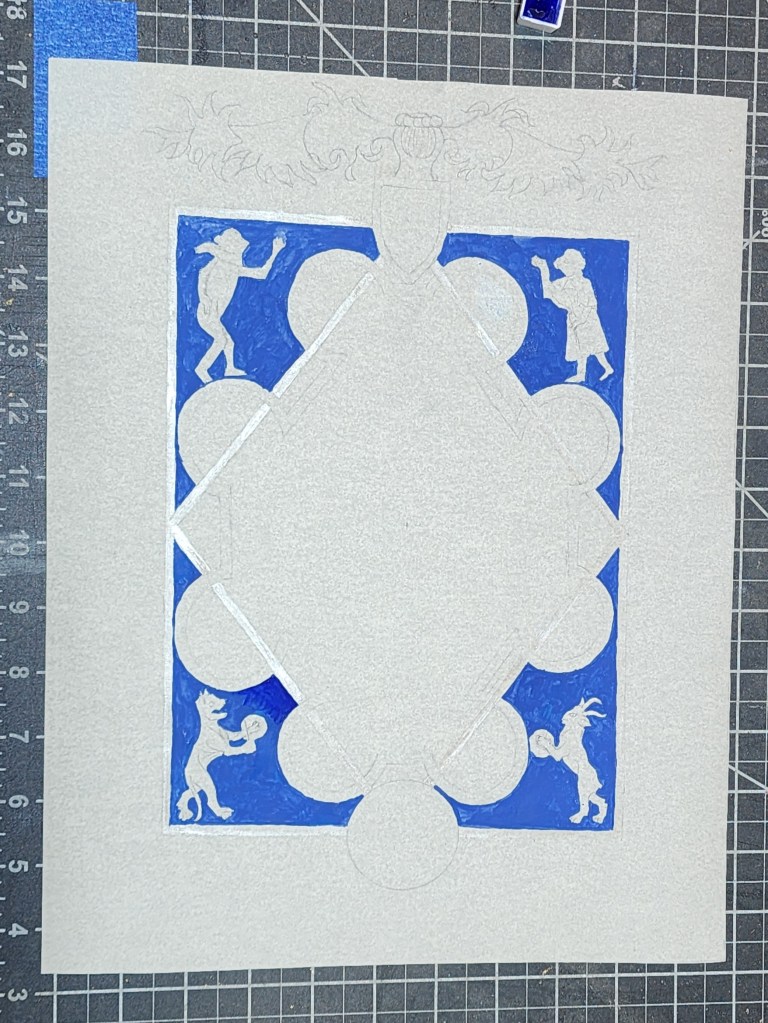 Gold leaf burnishing more effective than previous. Three layers gold provide better base for effort. Challenge getting stick, lack of humidity causing issues. 48 hour drying time for gesso much helped this go-round. Again, atmosphere of workbench very dry and cold, hindering adhesion layers, even with humidifier and heater. All ‘stars’ in night sky as well as border gold leaf. Medallion Silver leaf.